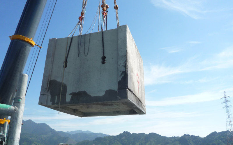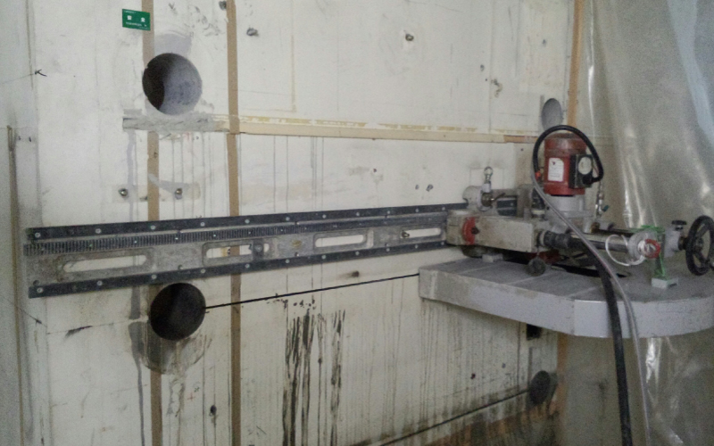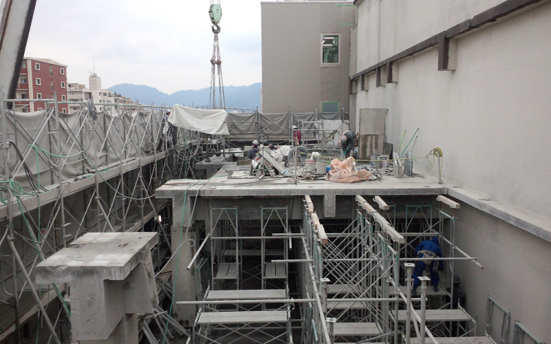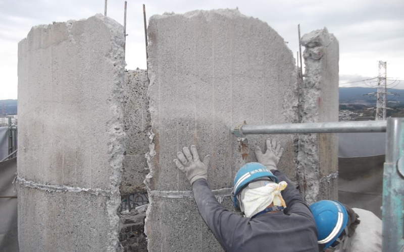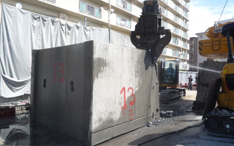 - 敷地内が団地のため、ワイヤーソーイング工法で無騒音・無振動工法を選択。