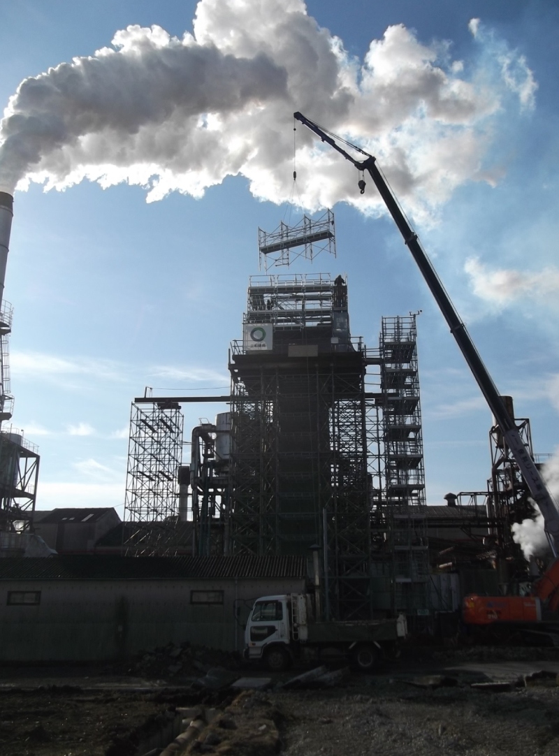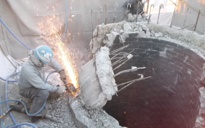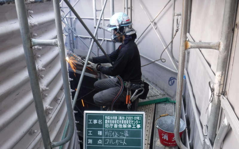 - 職種間のコミュニケーションを図り、煙突・足場と交互に解体。
