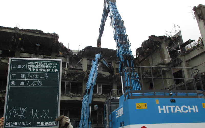 - 敷地31,188m²の広範囲に建物があり、解体班を分けて施工。
