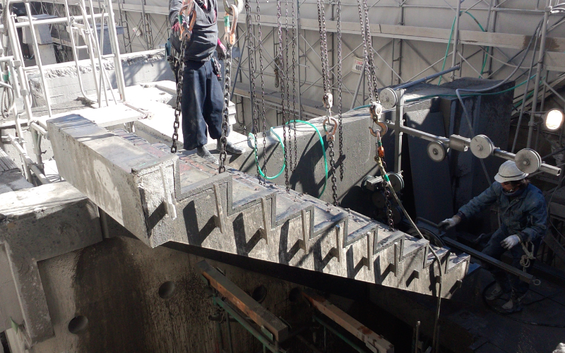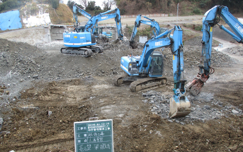 - 現場で小割解体を行わず、大型ダンプに積載できる大きさに切断し、処分場にて解体することで工期を短縮。