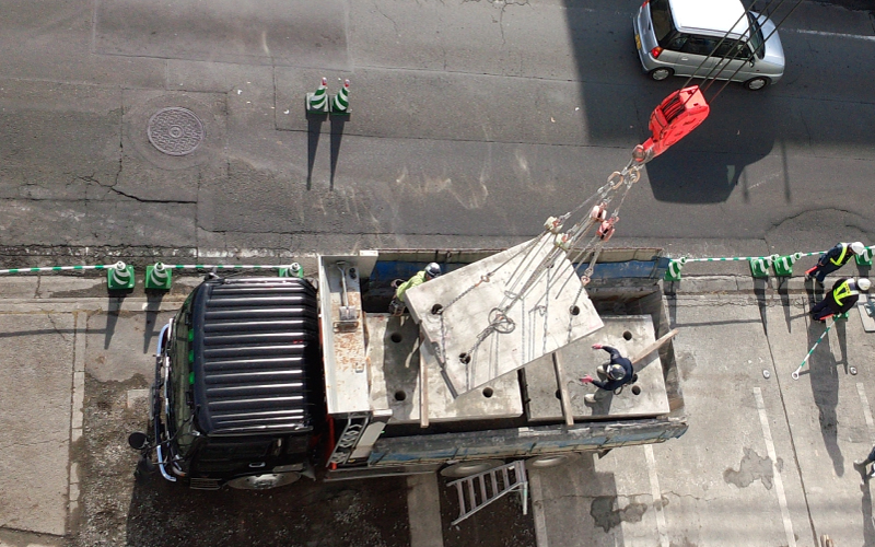 - 給水塔の切断を極力少なくするため、大型クレーン200tを使用し工期を短縮。